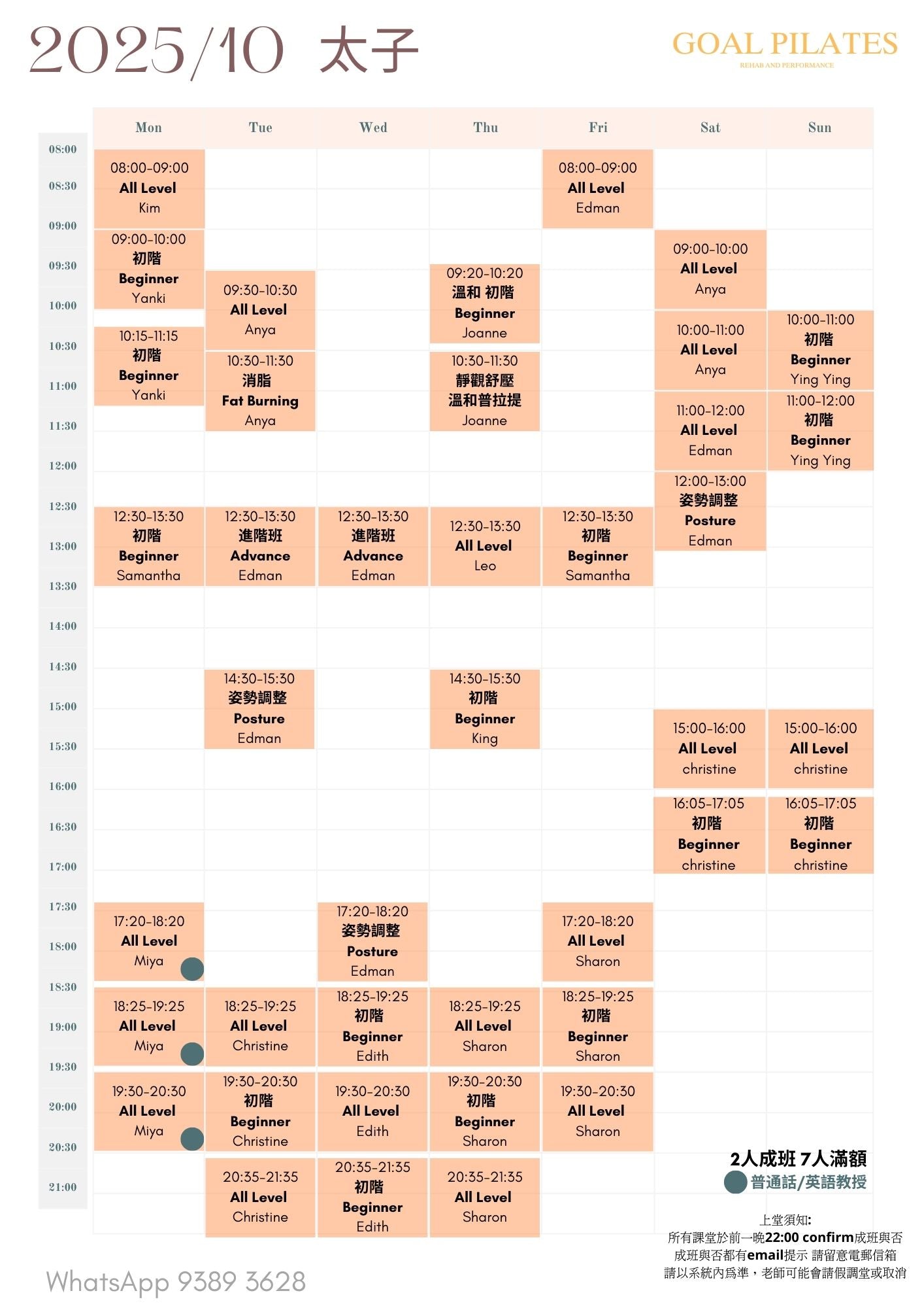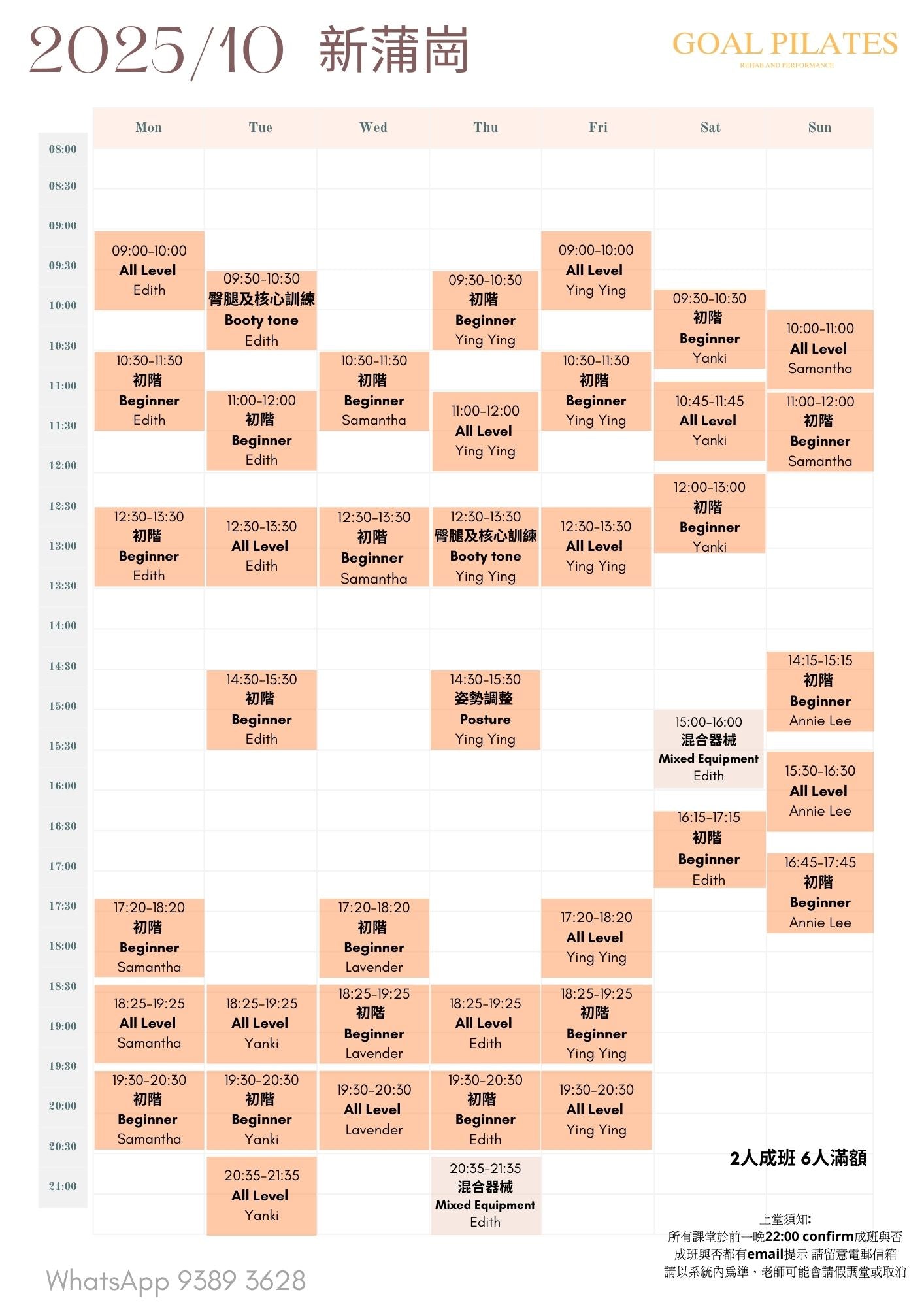 無論你是初學者、運動愛好者,還是專業運動員,Goal Pilates都是你理想的訓練伙伴。我們提供不同小組課堂,協助改善姿勢、增強核心力量、提升柔軟度。從恢復期到強化期,提供安全、有效的運動體驗。打造適合你需求的健康生活,就從這裡開始!