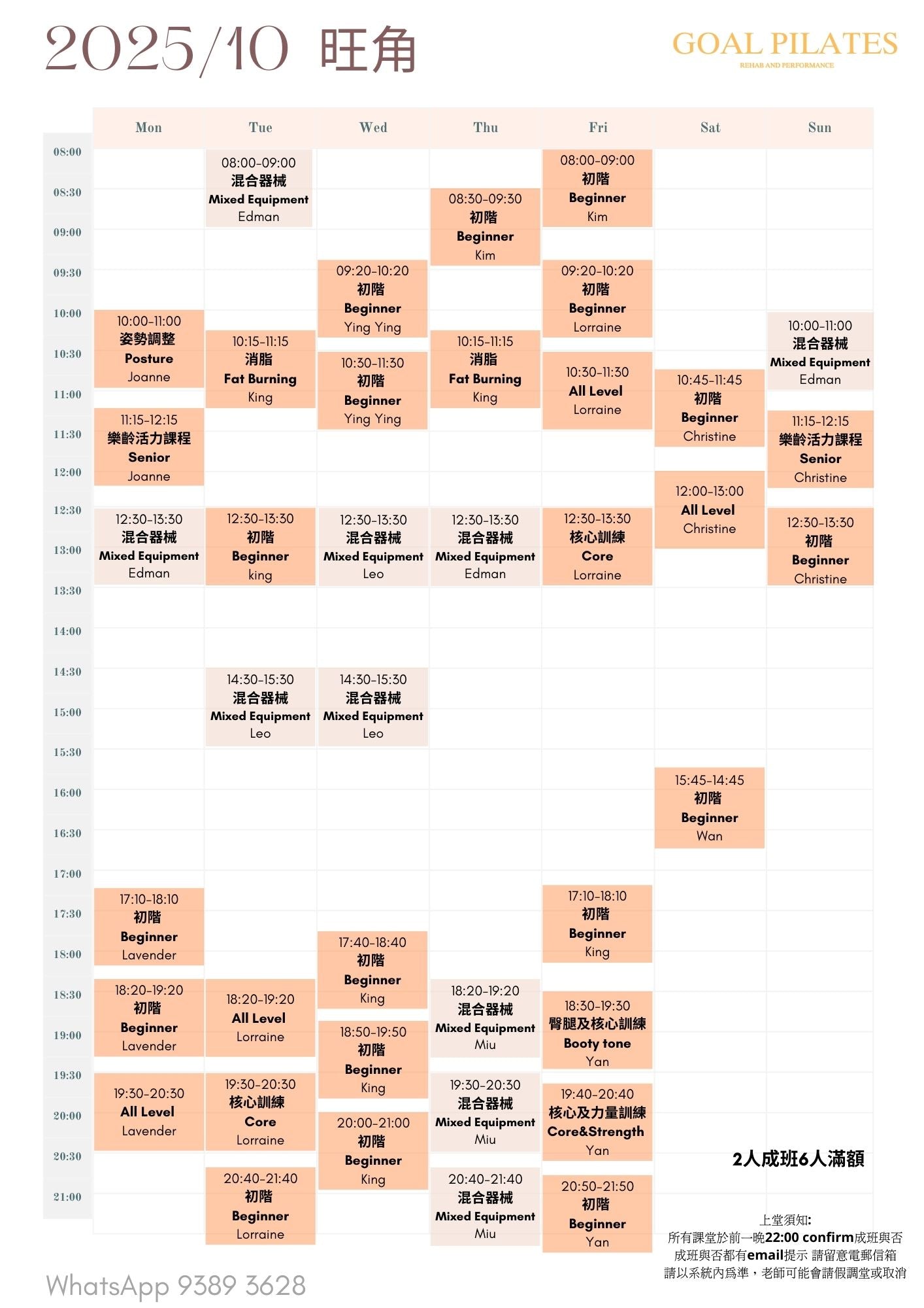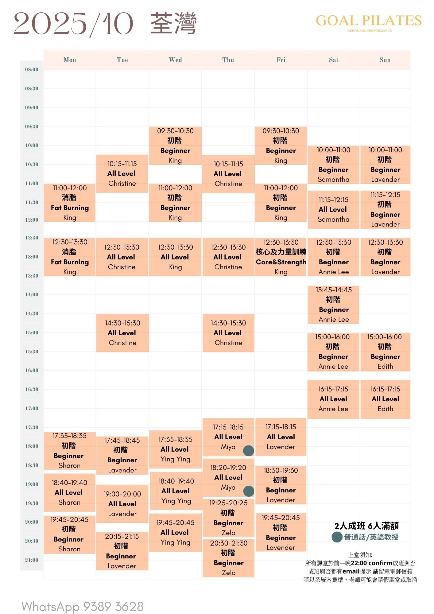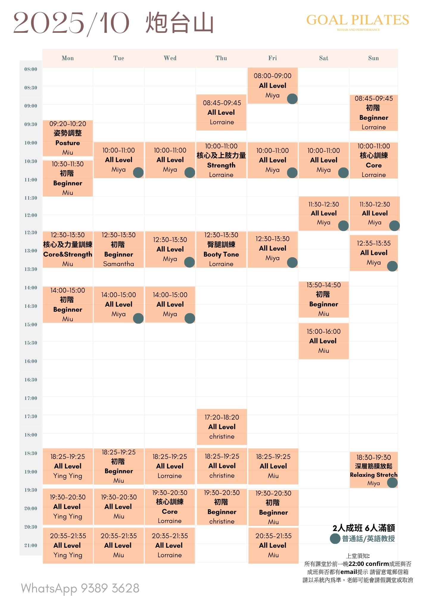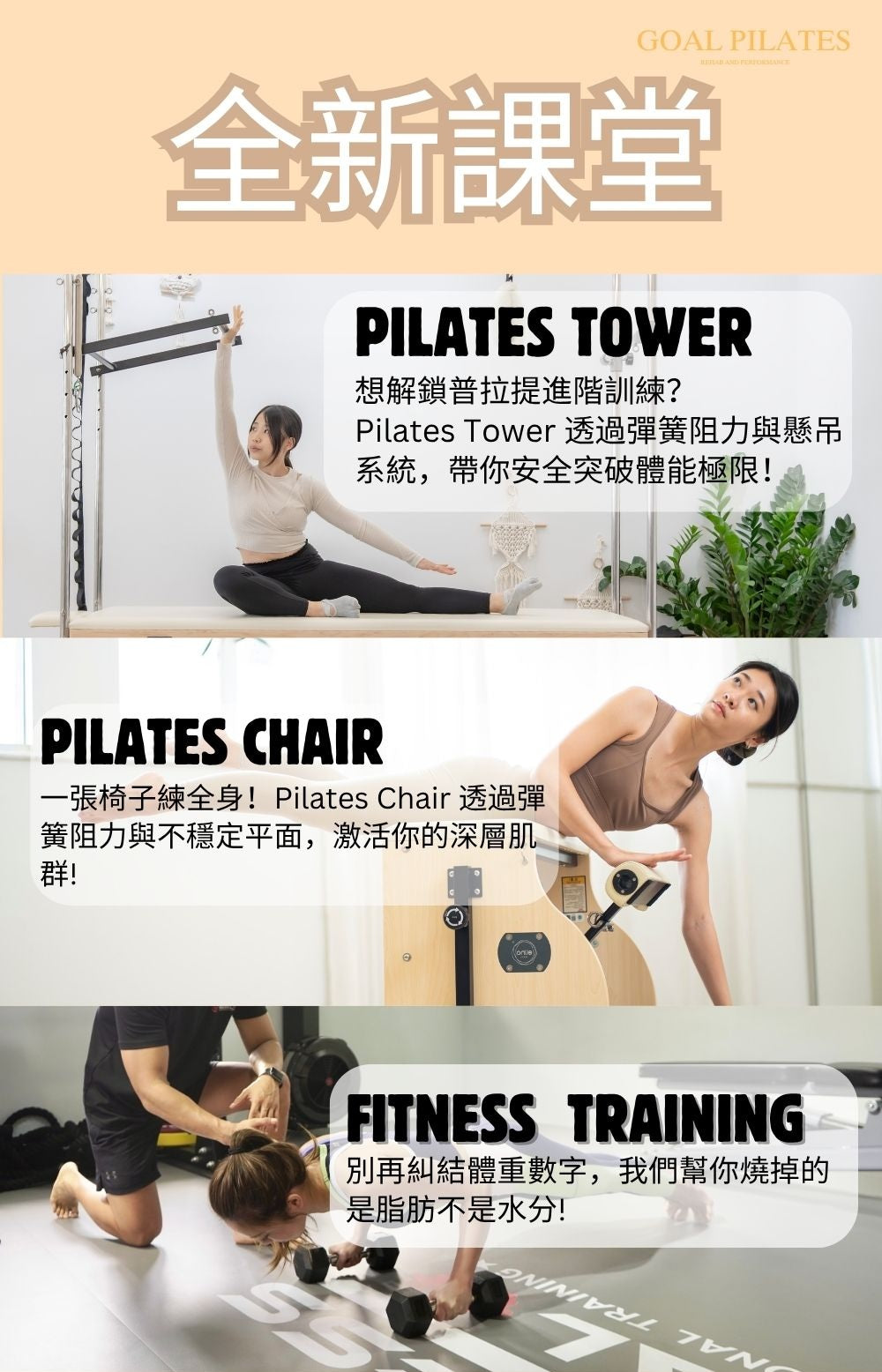 無論你是初學者、運動愛好者,還是專業運動員,Goal Pilates都是你理想的訓練伙伴。我們提供不同小組課堂,協助改善姿勢、增強核心力量、提升柔軟度。從恢復期到強化期,提供安全、有效的運動體驗。打造適合你需求的健康生活,就從這裡開始!