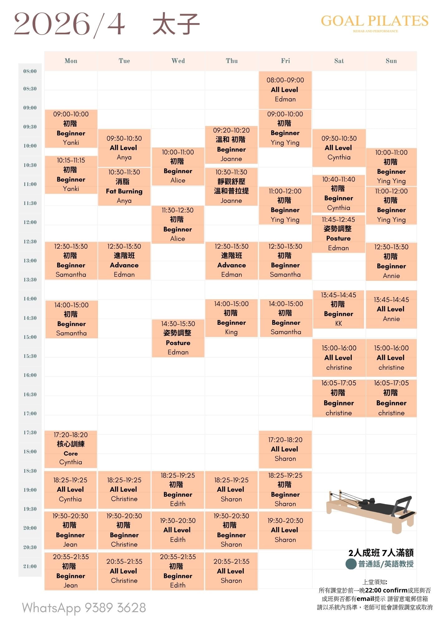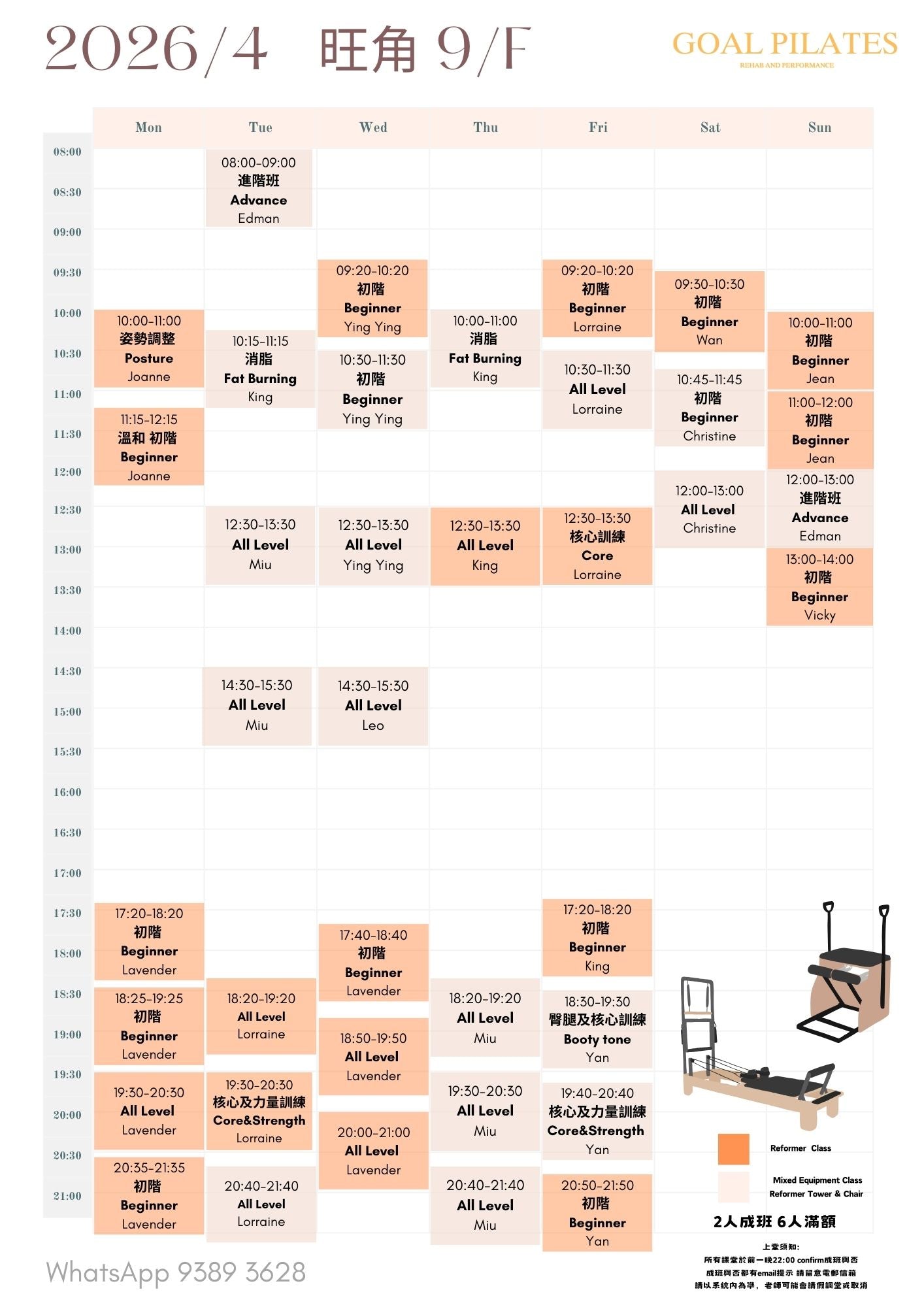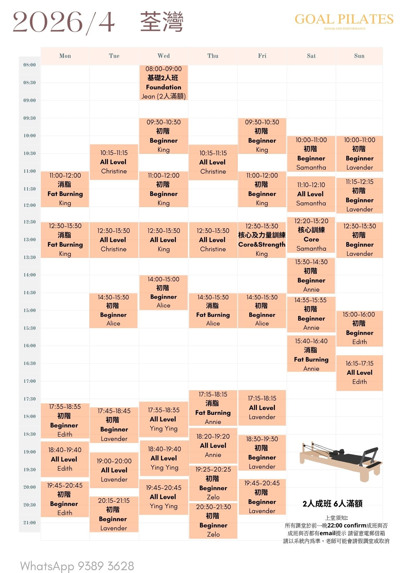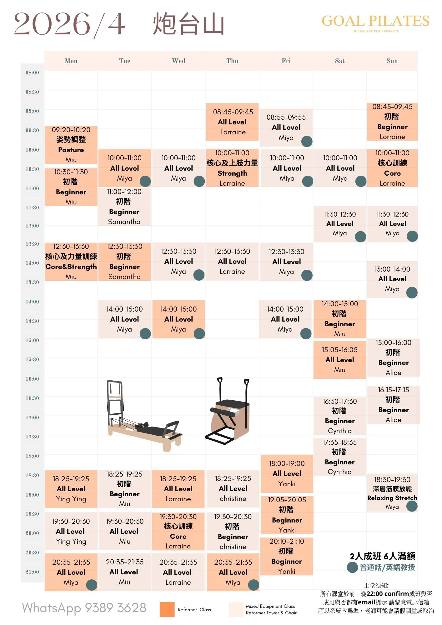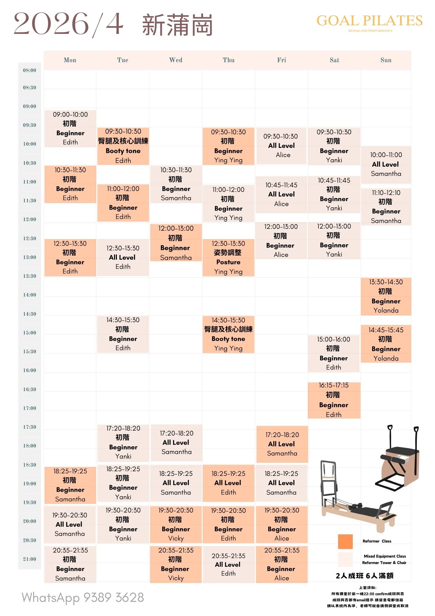 💰 $888 / 1小時(2-6人同行) 體驗專業普拉提器械小組課。
